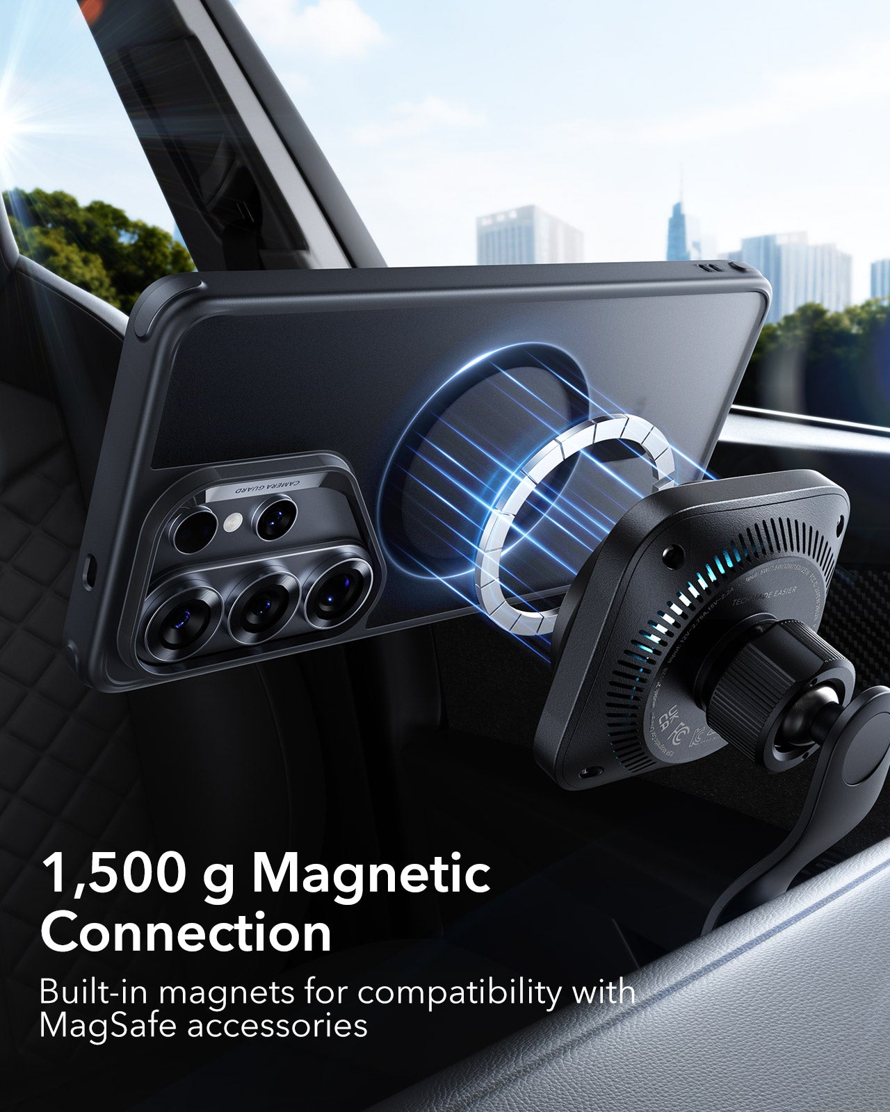 Effortless Magnetic Charging with a 1.5 mm thin back, this case features built-in magnets delivering up to 1,500 g of magnetic strength, ensuring secure compatibility with MagSafe accessories and full-speed Qi2 25W wireless charging