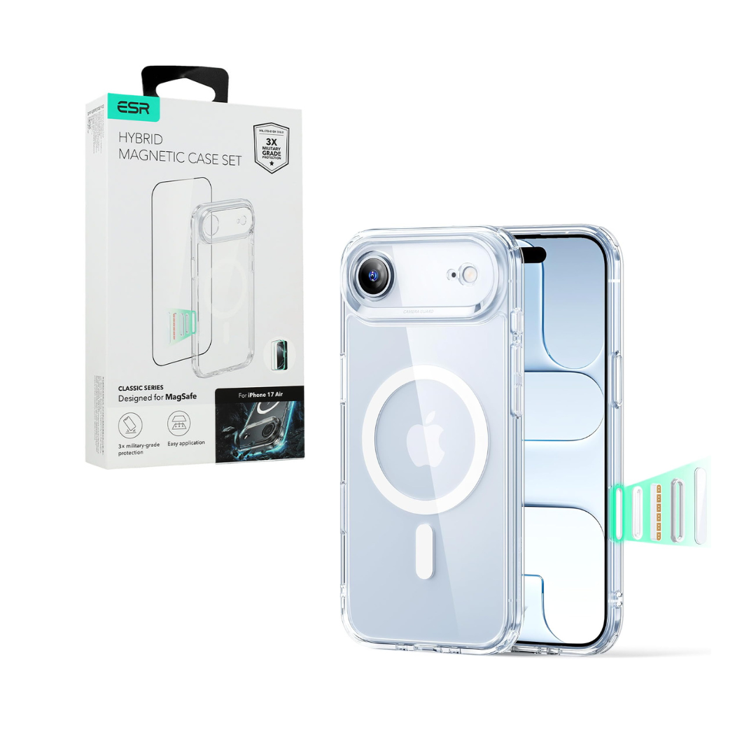 ESR Classic Hybrid Magsafe & Tempered Glass iPhone 17 Air Clear Bundle