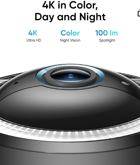 - 4K in Color, Day and Night: The color 4K camera gives you the clarity to identify a license plate 30 feet (10 meters) away. Shine a light on your surroundings with the 100-lumen spotlight to continue seeing colorful details up to 26 feet (8 meters) away, all through the night.