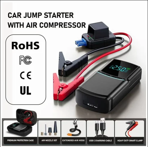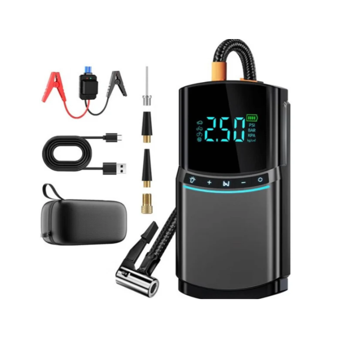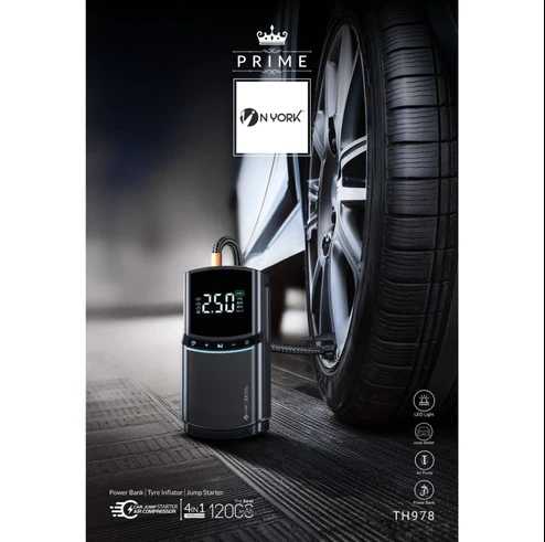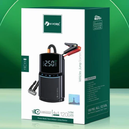 NYORK 4-in-1 Car Jump Starter with 12000mAh Power Bank, Tyre Inflator & Air Compressor – Portable Emergency Kit for Vehicles