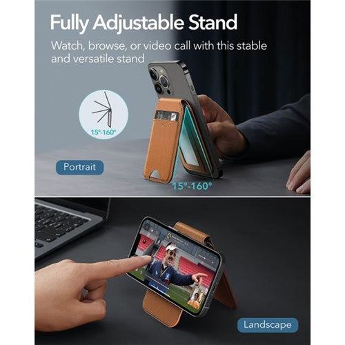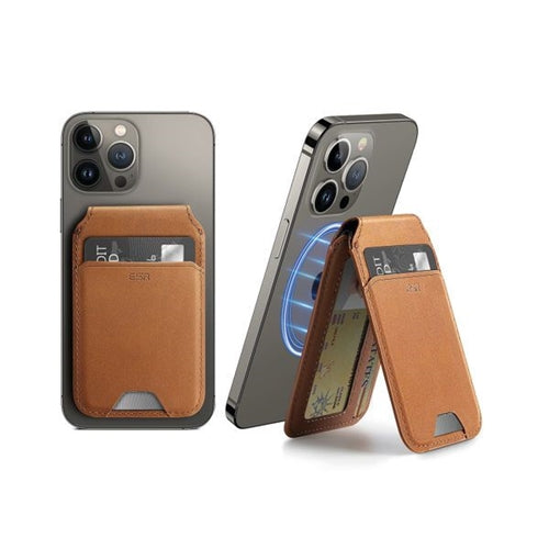 - ESR HaloLock Vegan Leather Wallet Stand MagSafe Compatible - Brown
