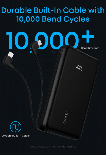 Anker Zolo Power Bank 20000mAh 22.5W Built-In USB-C Cable - A110EH11 - Black