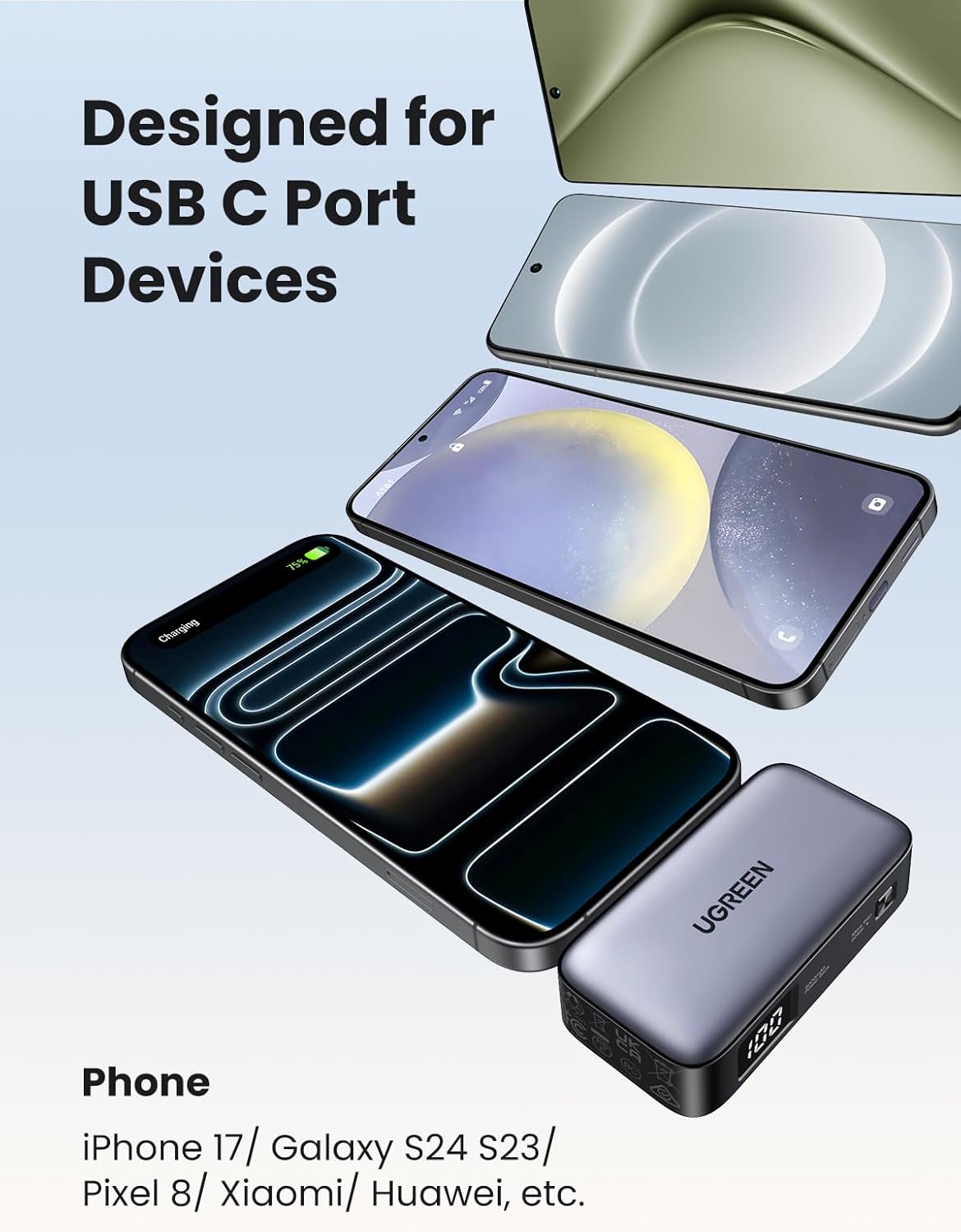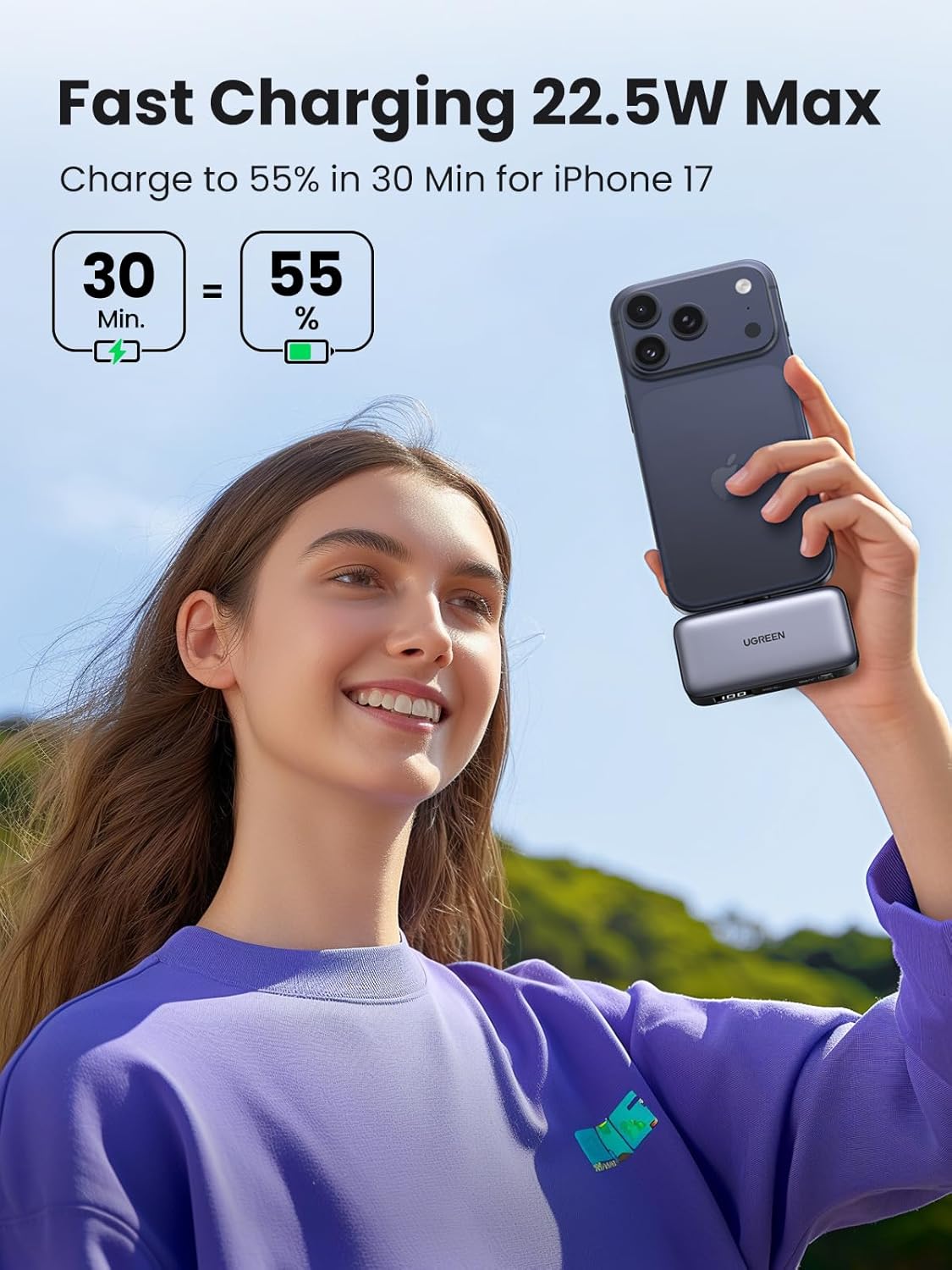 - Efficiently charges your devices throughout the day.