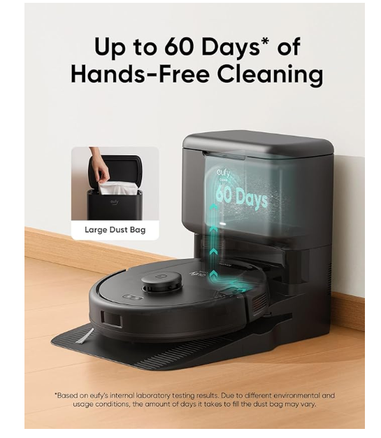 eufy L60 Hybrid Robot Vacuum Cleaner with Mop and Self-Empty Station, Hair Detangling Technology, Up to 60 Days of Hands Free Cleaning, Ultra Strong 5,000 Pa Suction to Remove Hair, Dust, Mop Pad